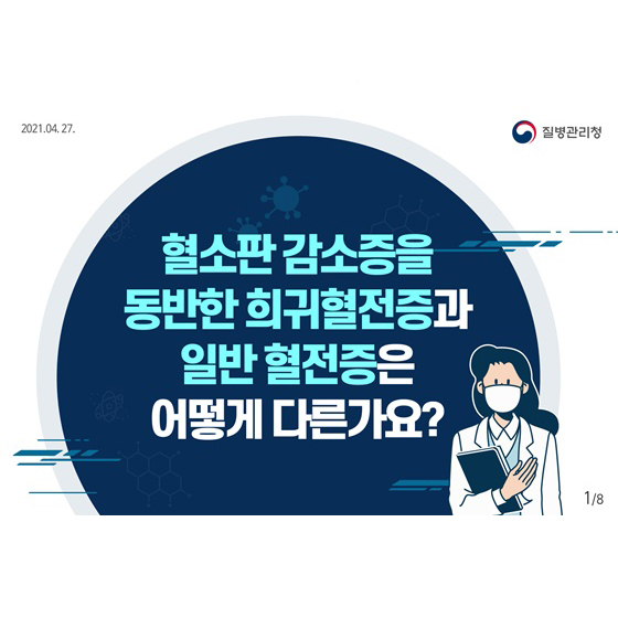 혈소판은 혈류로 순환하며 혈액 응고를 돕는 골수에서 생성된 세포입니다. 혈액에는 보통 마이크로L당 14만개44만개(L당 140440109개) 정도의 혈소판이 들어 있습니다. 혈소판수가 혈액 1마이크로리터당 50,000개(리터당 50×109개) 이하로 떨어지면 가벼운 손상 후에도 출혈이 발생할 수 있습니다. 그러나 가장 심각한 출혈 위험은 혈소판 수가 혈액 1마이크로리터당 10,000개~20,000개(리터당 10~20×109개) 정도로 떨어지기 전까지는 일반적으로 발생하지 않습니다. 이러한 매우 낮은 수치에서는 알려진 손상 없이도 출혈이 있을 수 있습니다.